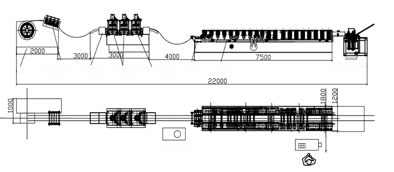Decoiler & Leveling Device→Servo Motor Feeding & Punching Device→Feed Guide Device→Roll Forming System→Hydraulic Post Punching & Cutting Device→Exit Rack