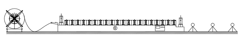 Decoiler→Feeding And Leveling Device→Hydrualic Punching Device→Rolling Forming System→Hydraulic Post Cutting→Exit Rack
