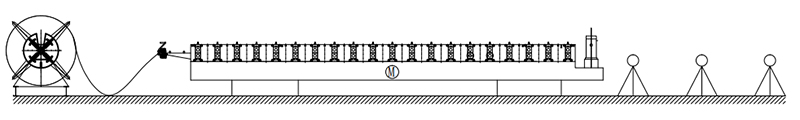 Decoiler→Manual Pre-Cutter→Guide Feeding →Roll Forming System→Hydraulic Post Cutter →Exit Rack
