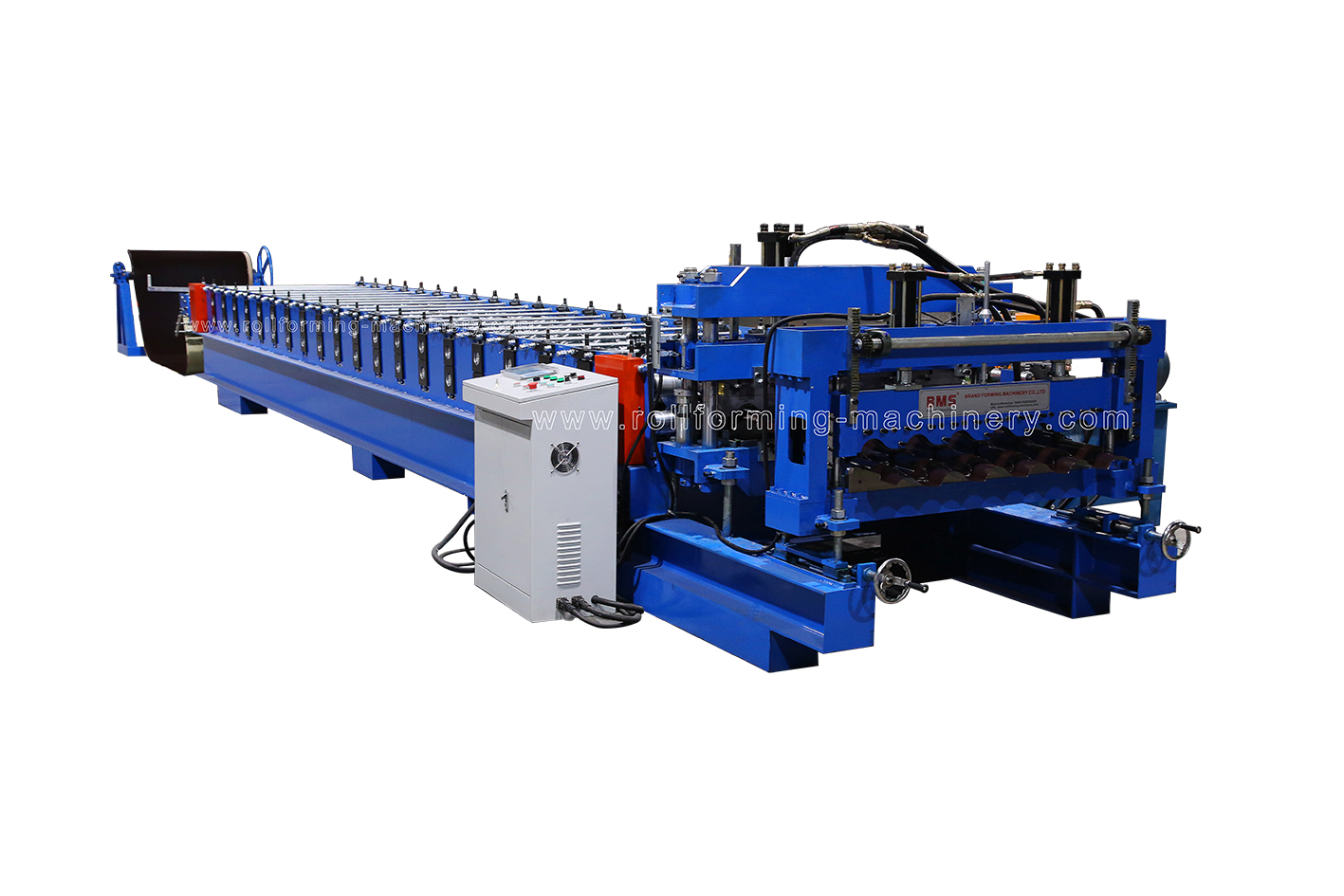 The complete glazed tile forming machine line includes decoiler, main machine, computer controlling system and run out tables. Our machines are equipped with a computer controlling system. We simply program the pieces and length we need in the computer and the glazed tile forming machine produces it automatically. The machines are easy to operate and running stable.